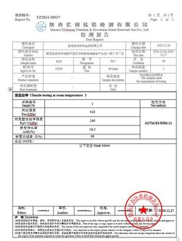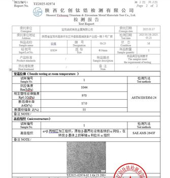 Prodotti principali: Fogli di titanio, barre di titanio, forgiati di titanio, parti di lavorazione del titanio, filo di titanio